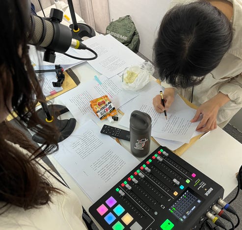 🅚❸|2022-2024 這三年某種程度也是用三季節目來衡量,而在今年結束了〈地方R姨便利店〉PODCAST,沒想到三年時間是如此快。因為和R姨本來就是朋友,所以在生活閒暇如果看到有趣的東西,會直覺式的提到,欸要不然這個可以用一集節目討論啊?製作的過程非常有機,錄製的時候也感受到大家流淌在對話裡,對生活的真誠和熱愛。這張照片,是第三季開播的第一集,我們邀請了老班底肯尼嗨波、揚銘一起聊戀綜,亦莊亦諧,我覺得是最適合他們的形容詞。節目停播後,才從節目後台看到,有聽眾敲碗希望可以聽到更多這個組合的節目,覺得好笑又感動。真心感謝這位朋朋,也許在適合的時機,班底有可能再重組,畢竟56魂不能亡!(關他們什麼事哈哈ㄏ哈)