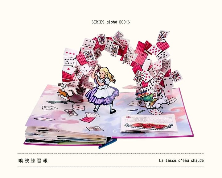 我曾在書店兒童館工作的時期,有一本立體書是所有書店店員都喜歡把它攤開來展示在玻璃櫃裡的,由 Simon & Schuster 出版的版本,就是《愛麗絲夢遊仙境》,而且絕對要把撒滿空中的撲克牌那頁攤開陳列(簡直太華麗)。